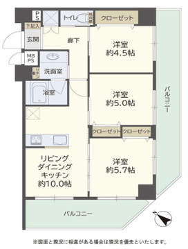 | 間取り詳細 | LDK10帖 洋室5.7帖 洋室5帖 洋室4.5帖 |