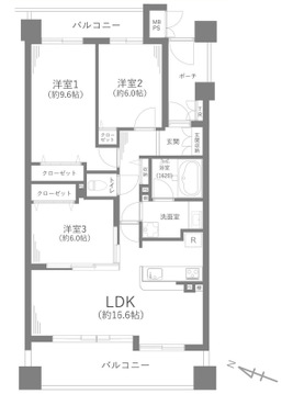 | 間取り詳細 | LDK16.6帖 洋室9.6帖 洋室6帖 洋室6帖 |
