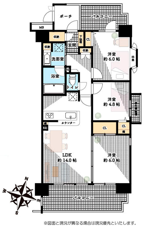 | 間取り詳細 | LDK14帖 洋室6帖×2 洋室4.8帖 |