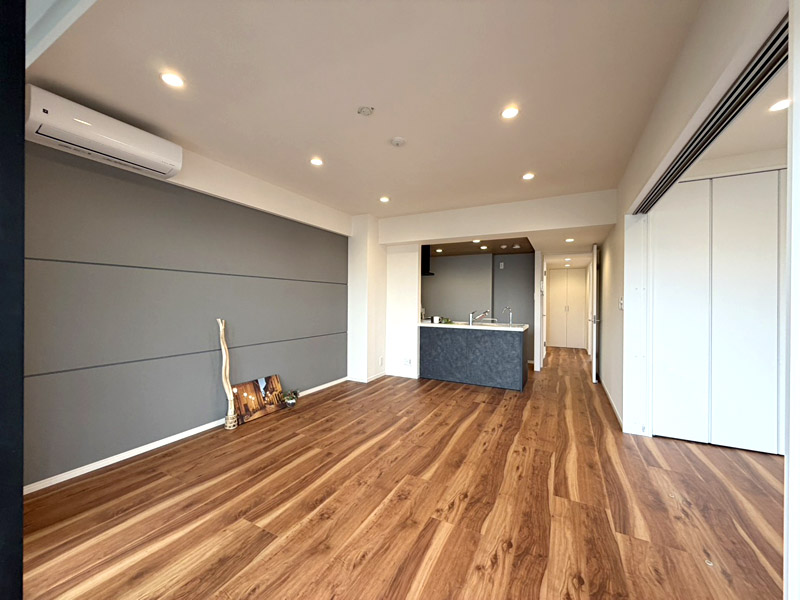 14.0帖の広々としたLDKには新規エアコンを設置済み 。