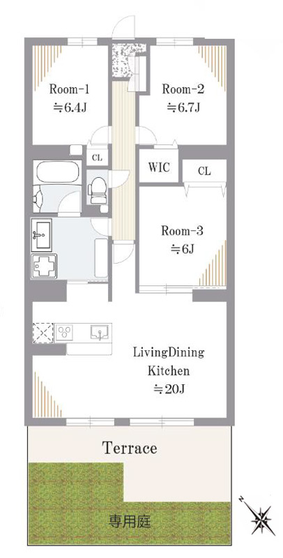 | 間取り詳細 | LDK20帖 洋室6.7帖 洋室6.4帖 洋室6帖 |