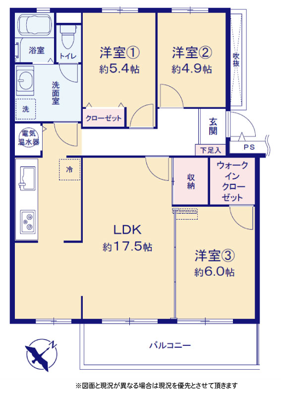 | 間取り詳細 | LDK17.5帖 洋室6帖 洋室5.4帖 洋室4.9帖 | ||