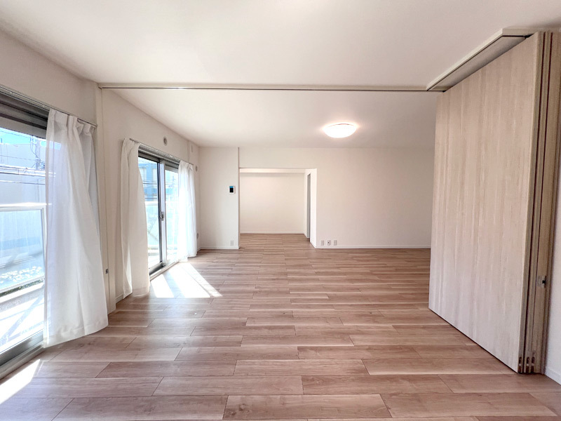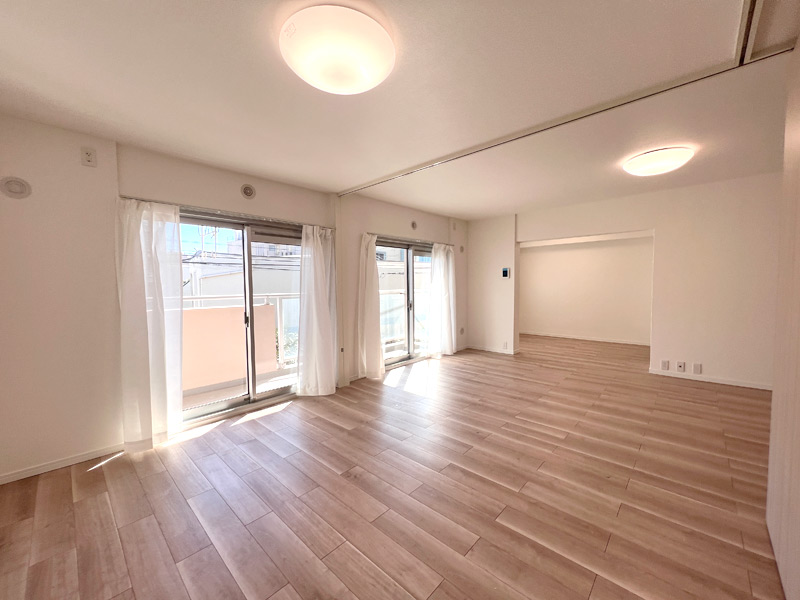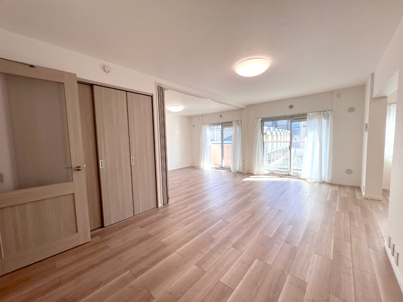 □洋室の可動仕切り板を使用して約23帖の広々LDKに!