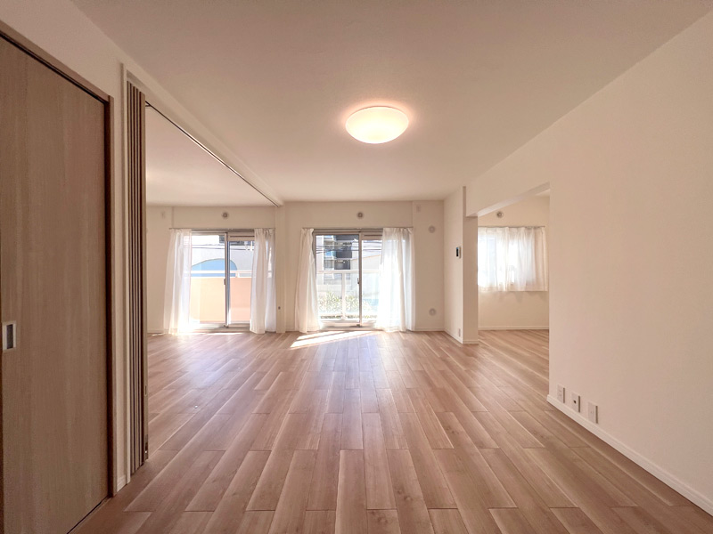 □2025年10月末にリフォーム済の木目調と白が映える暖かみのある室内!