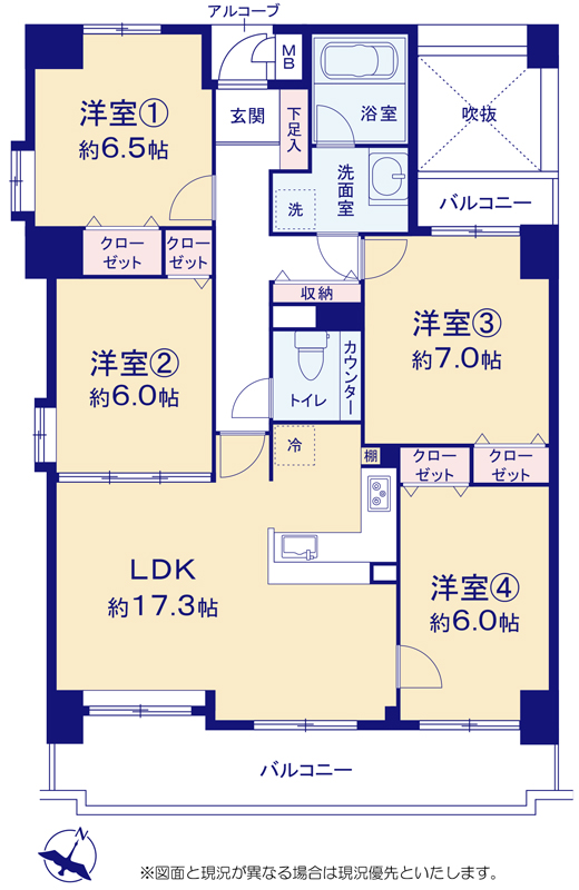 | 間取り詳細 | LDK17.3帖 洋室7帖 洋室6.5帖 洋室6帖×2 |