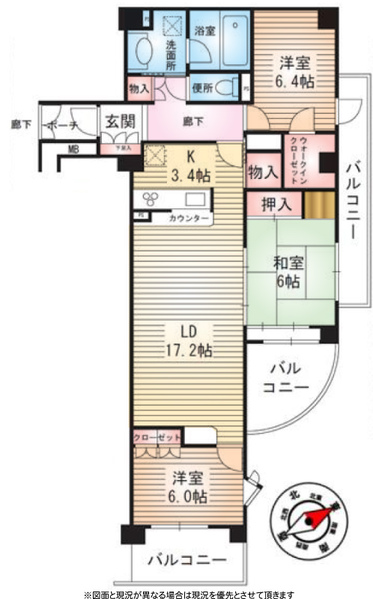 | 間取り詳細 | LDK20.6帖 和室6帖 洋室6帖 洋室6.4帖 |