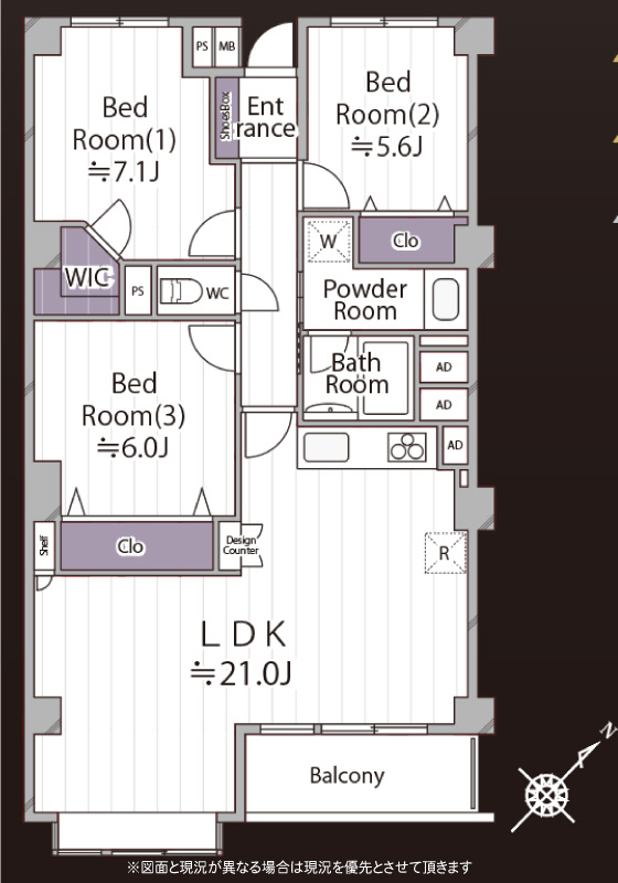 | 専有面積 | 91.8m²(27.76坪) | 構造 | 鉄筋コンクリート構造 |