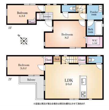 | 間取り詳細 | LDK16帖(2階) 洋室8帖(1階) 洋室4.9帖(1階) 洋室5.6帖(2階) |