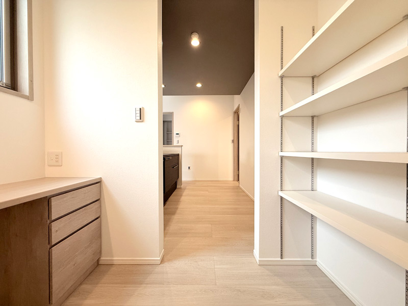 ・キッチン横には大容量パントリーも備え、機能性とデザイン性を両立!