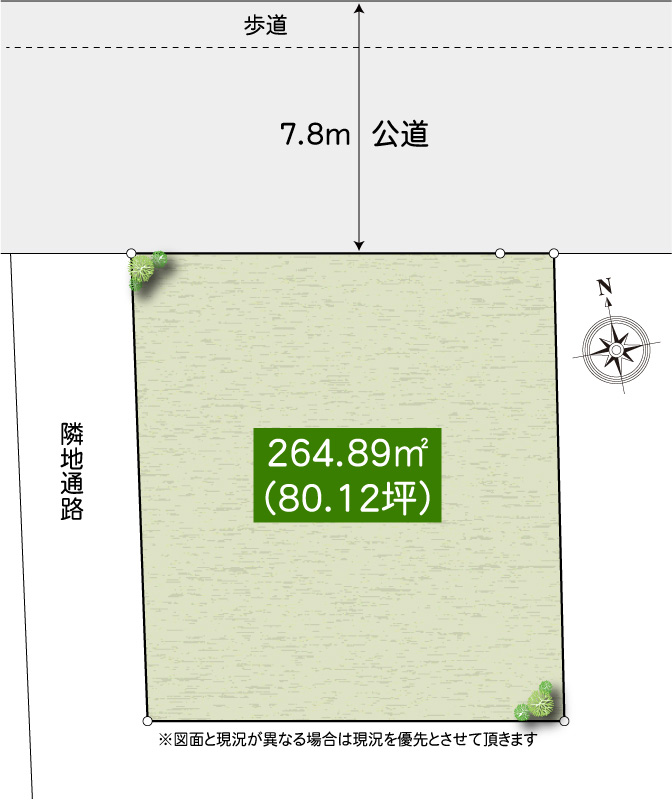 | 敷地面積 | 264.89m²(80.12坪) | 坪単価 | 42.1万円 |