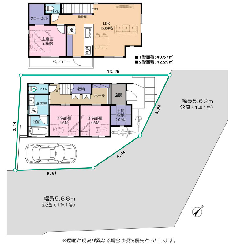 | 間取り詳細 | LDK15.8帖(2階) 洋室5.36帖(2階) 洋室4.6帖×2(1階) |
