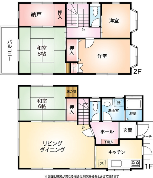 | 間取り詳細 | LDK(1階) 和室6帖(1階) 和室8帖(2階) 洋室×2(2階) |